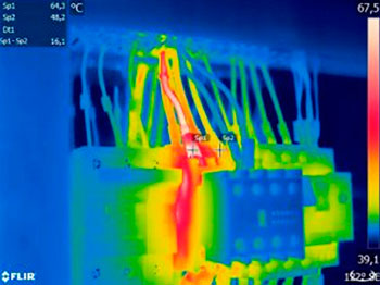La Termografía proporciona una imagen que utiliza colores para representar las diferentes temperaturas del componente inspeccionado. En esta imagen se pueden identificar cuáles son los puntos calientes o aumentos de temperatura que indican una falla.